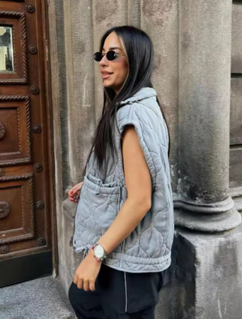 Rhombus Stand-up Collar Sleeveless Cotton Vest SA438
