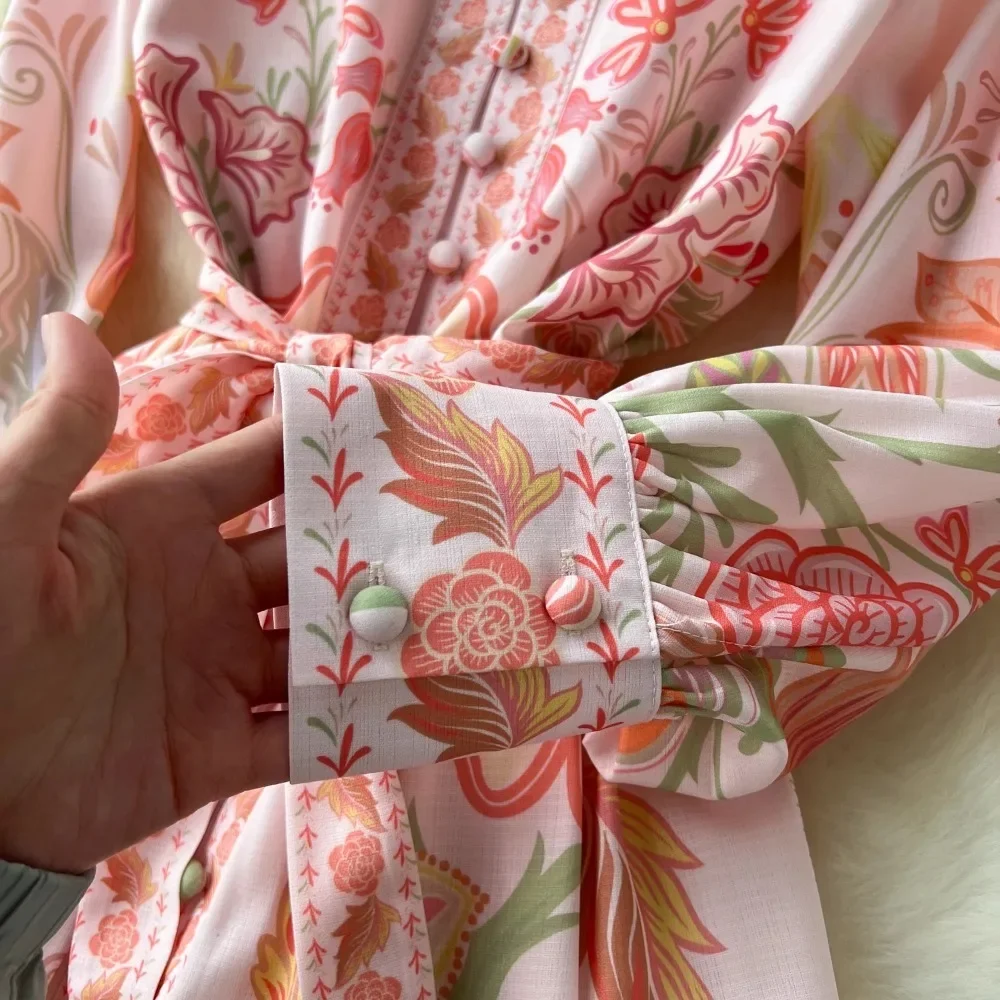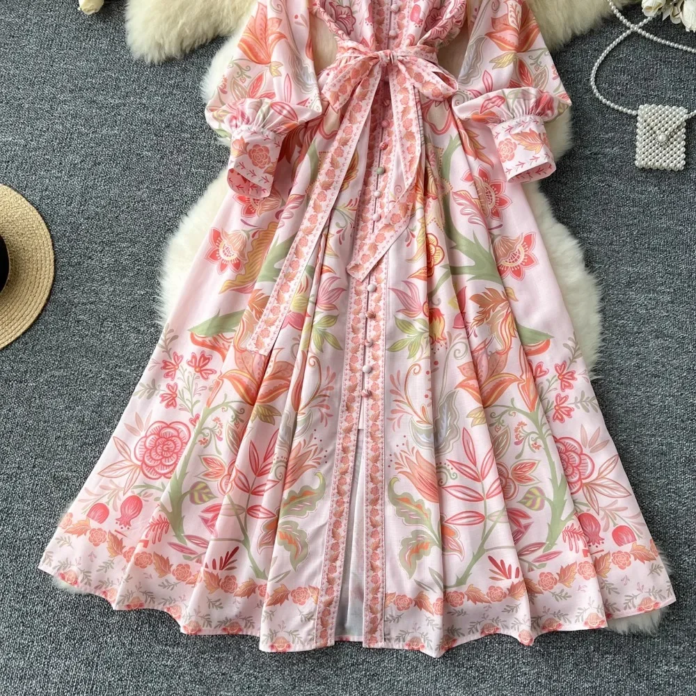 Elegant Temperament Stand Collar Lantern Sleeve Dress