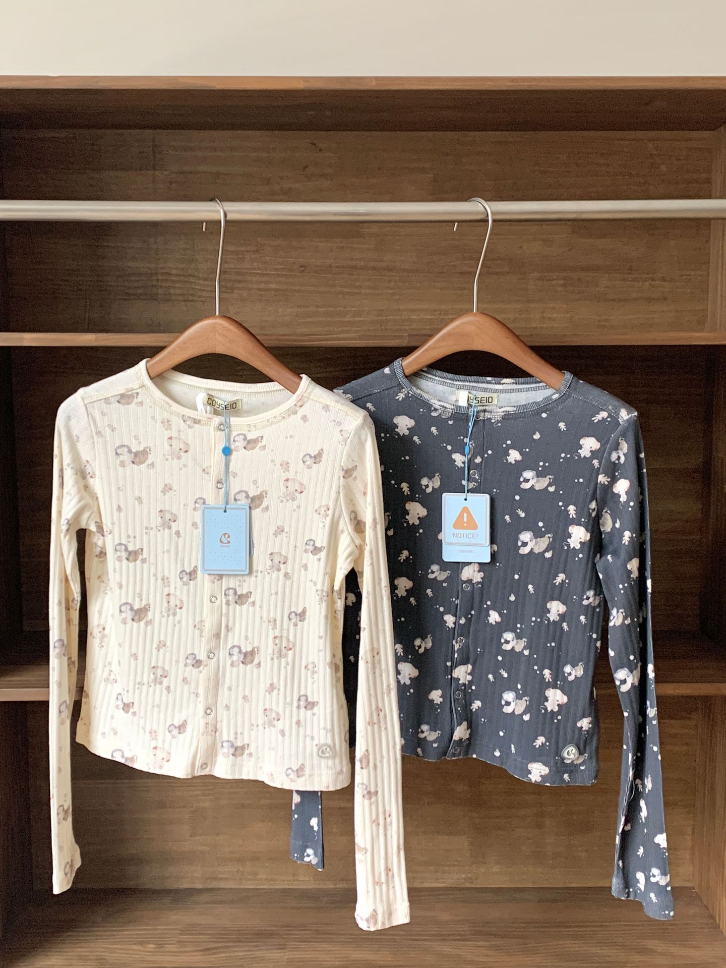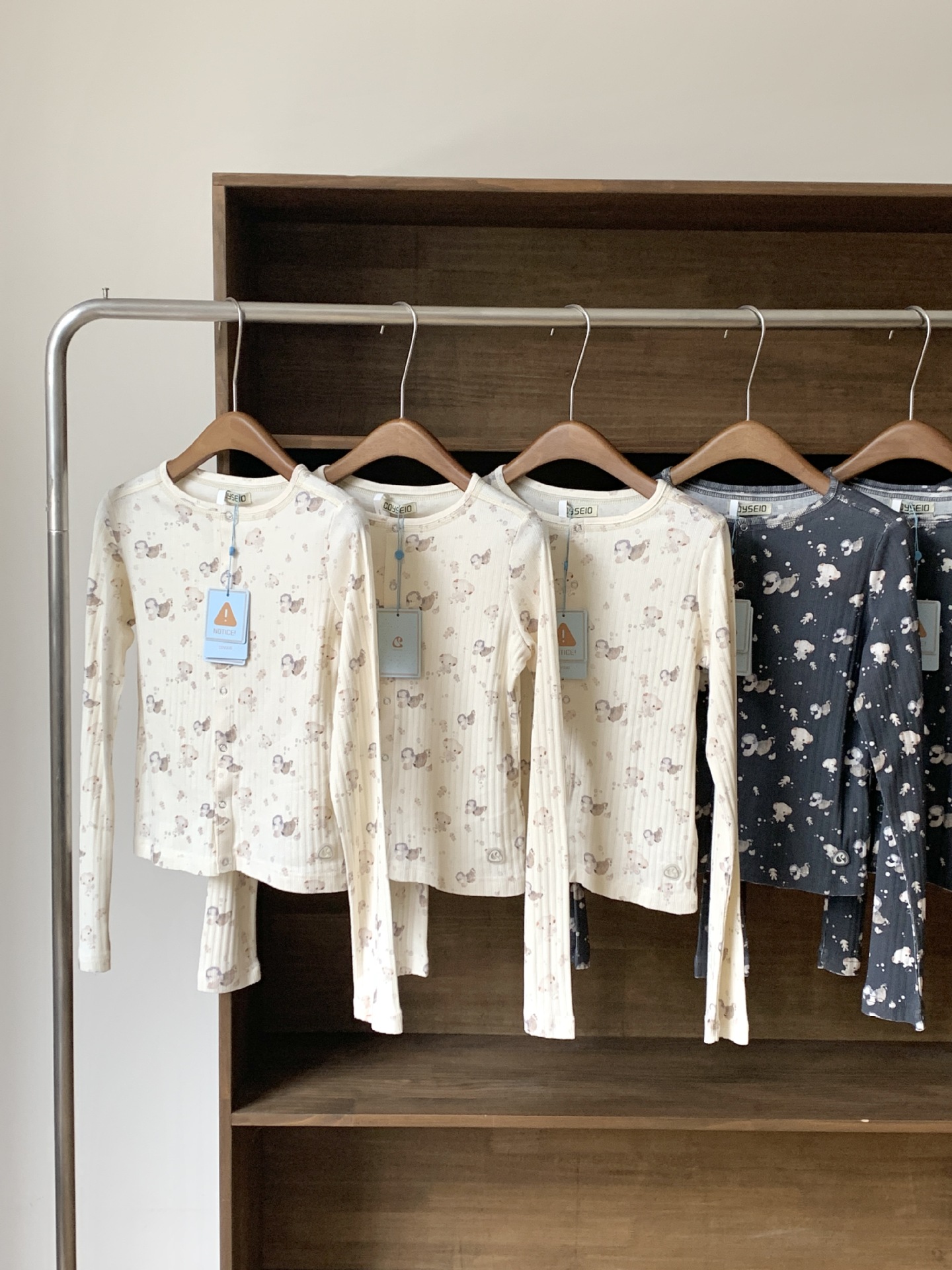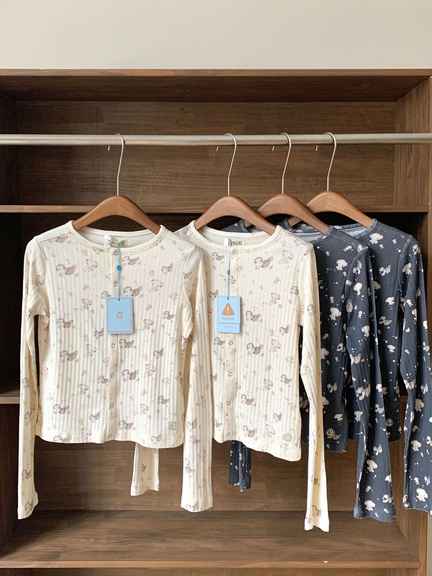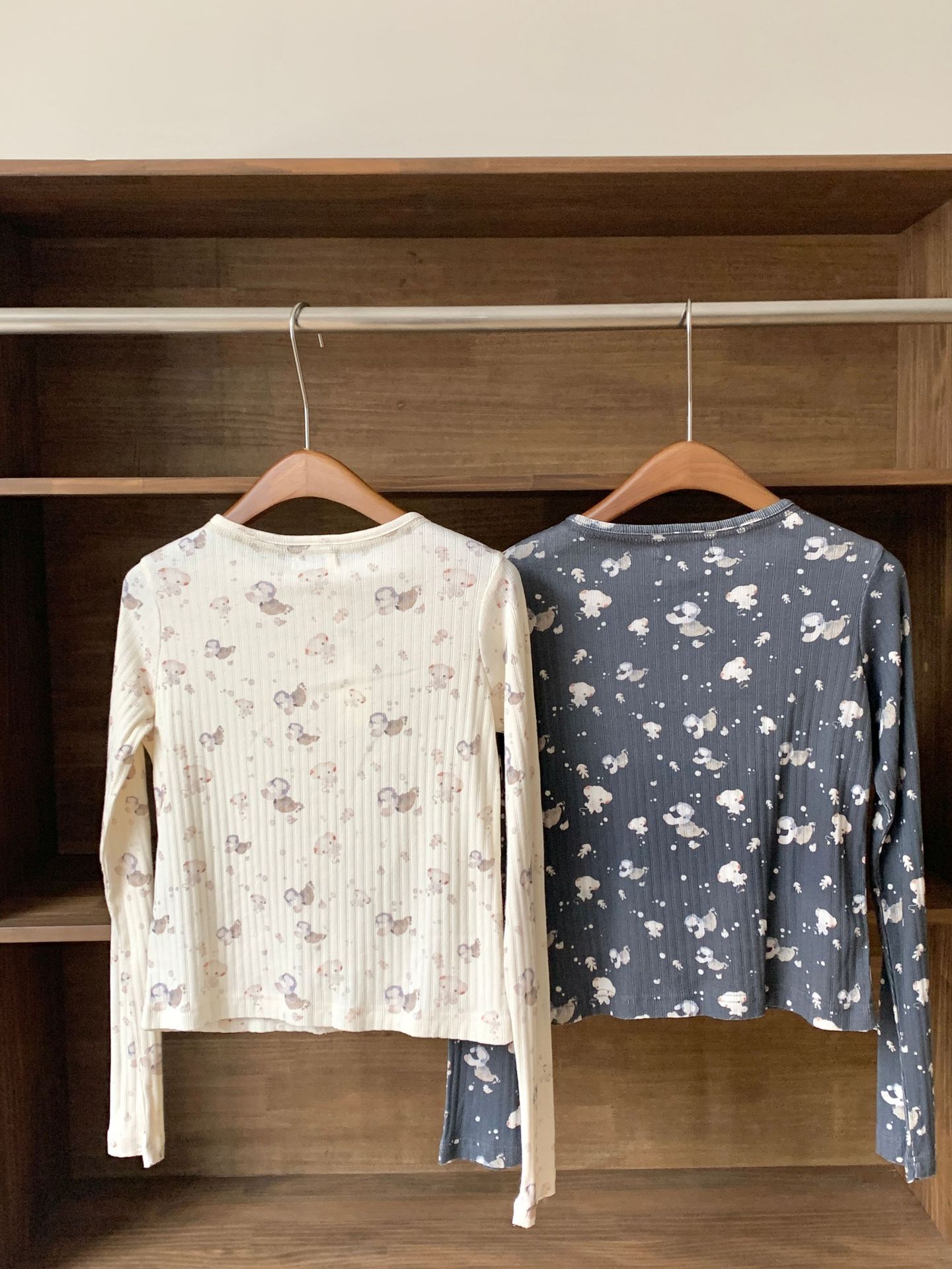Floral Print Single-breasted Slim-fitting Long-sleeved T-shirt for Women 73C104