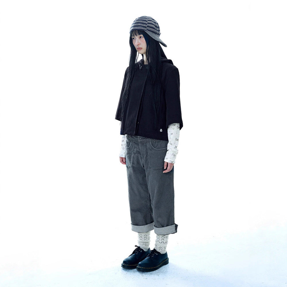 Small Flower Button Hooded Bat Sleeve Cloak Jacket Female 73C103