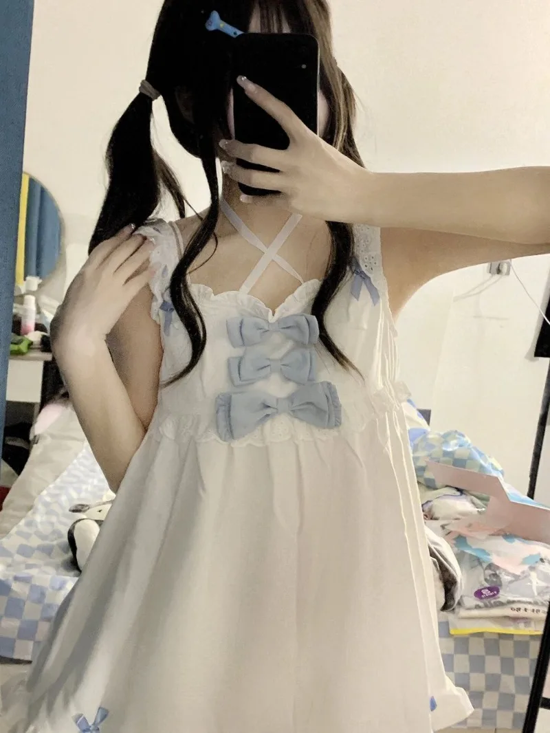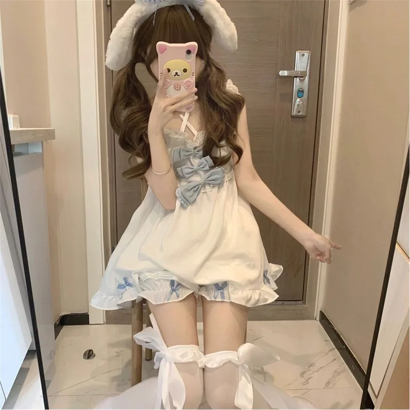 Japanese Soft Girl Strappy Bow Sling Top Shorts SA265