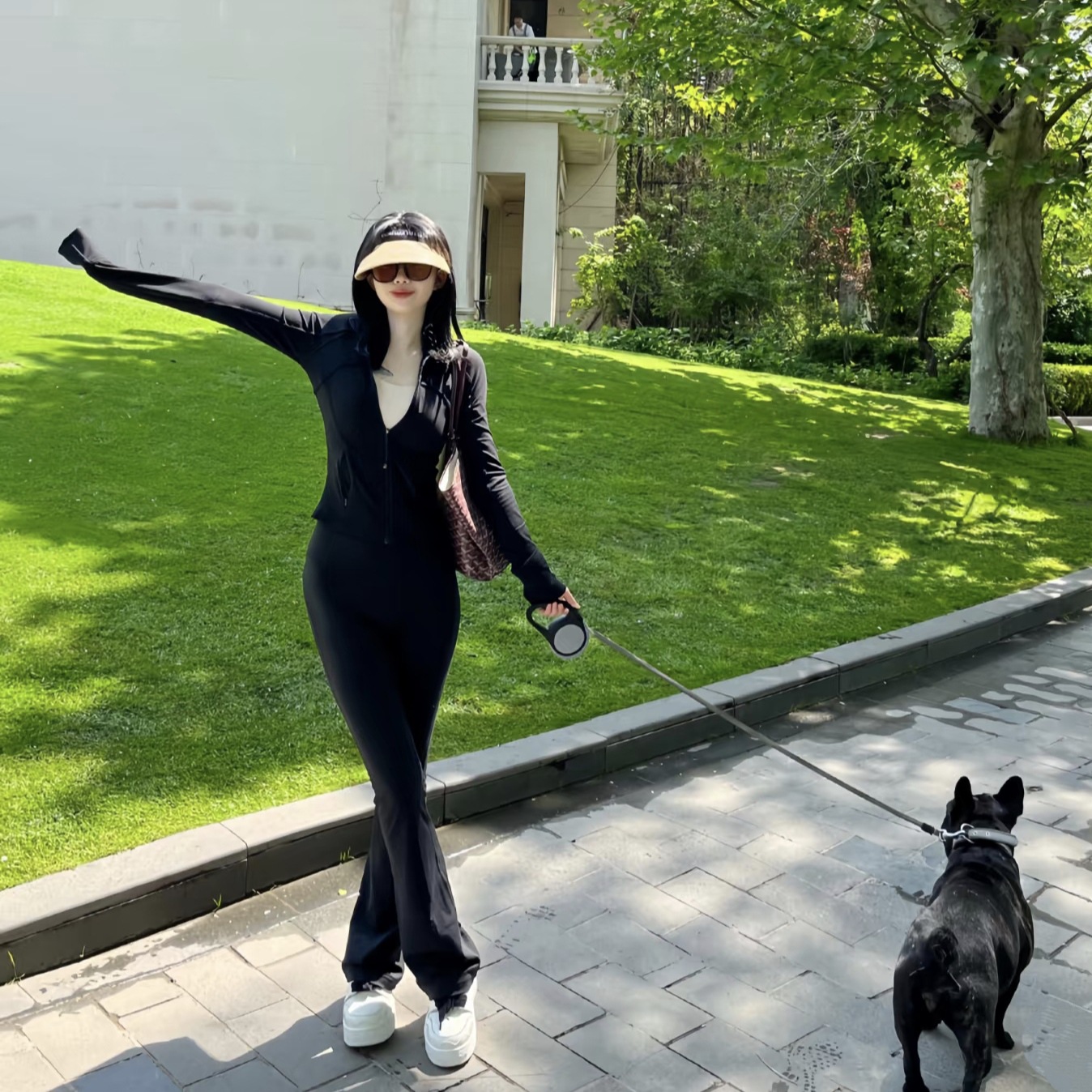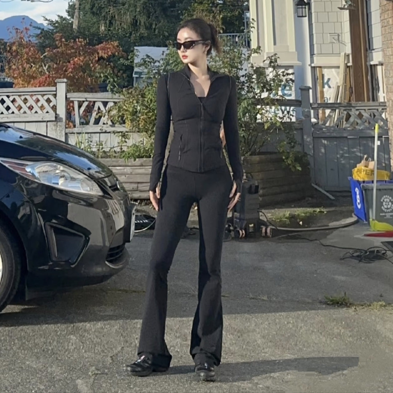 Micro Flared Pants Stand-up Collar Jacket Set SA516