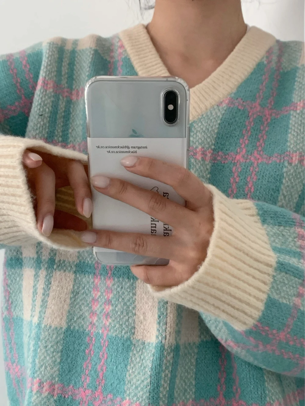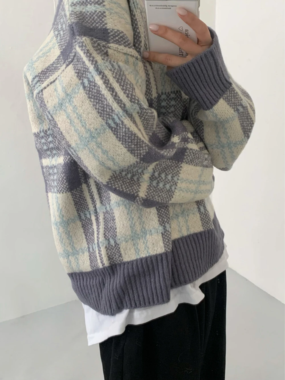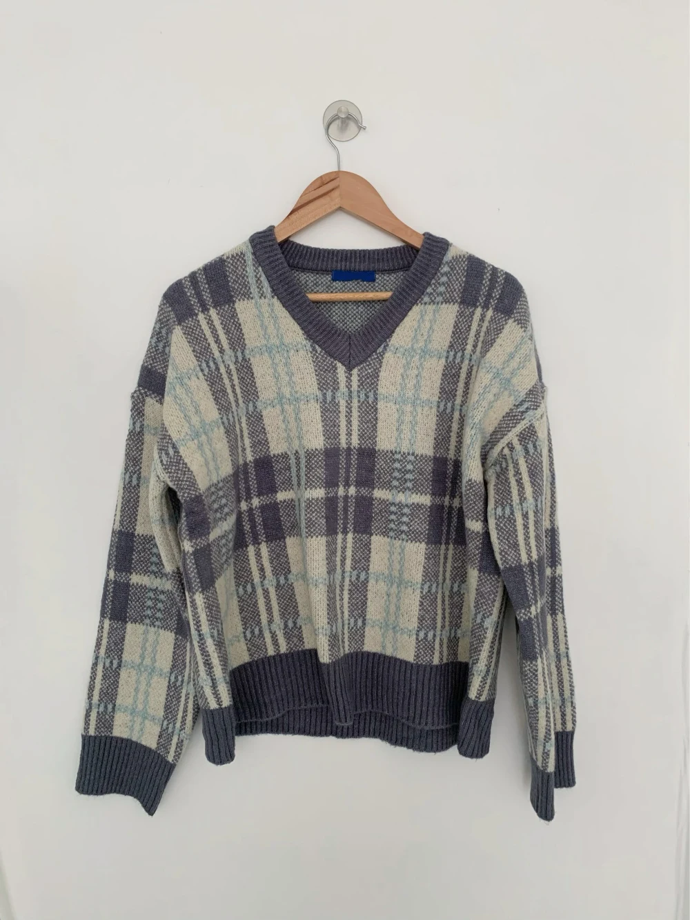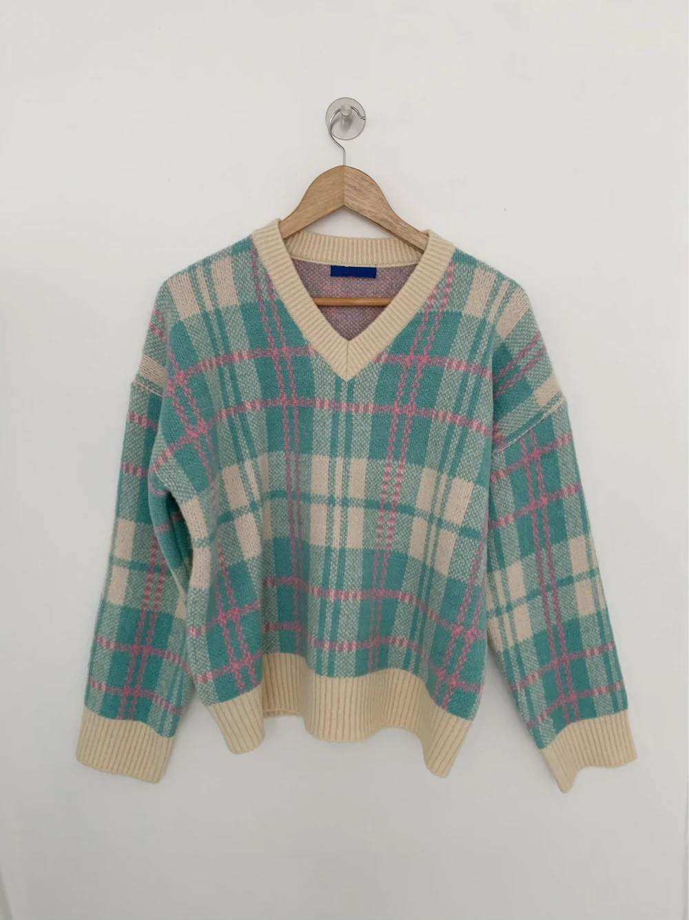 Plaid Striped V-Neck Pullover Stacked Knitted Sweater