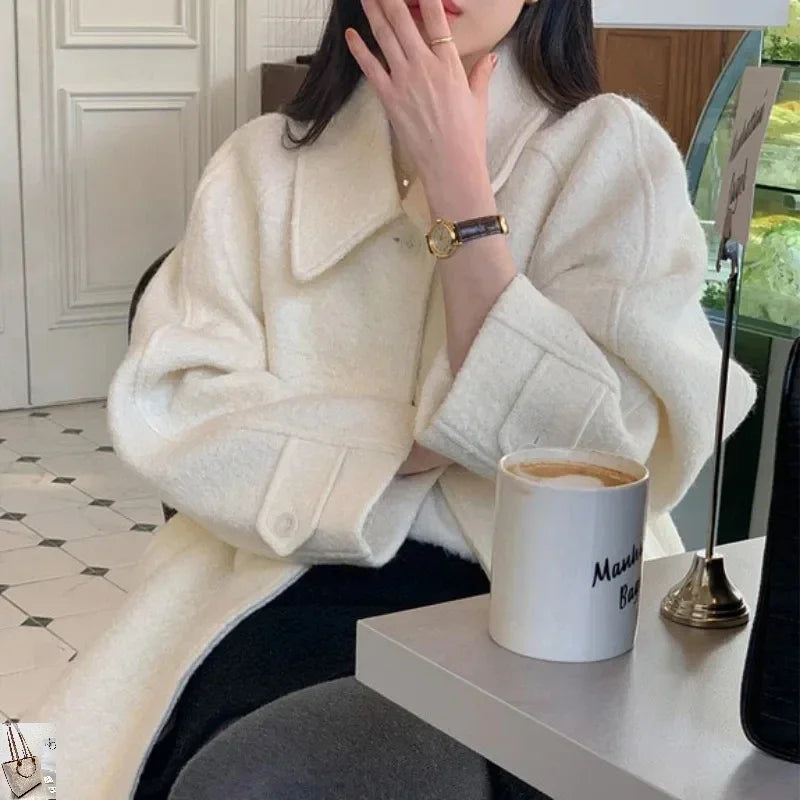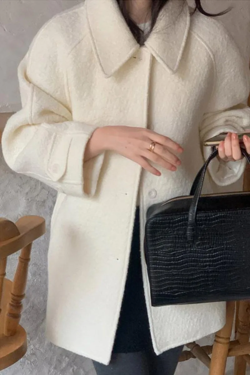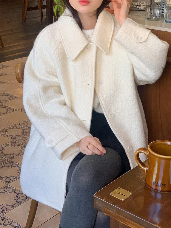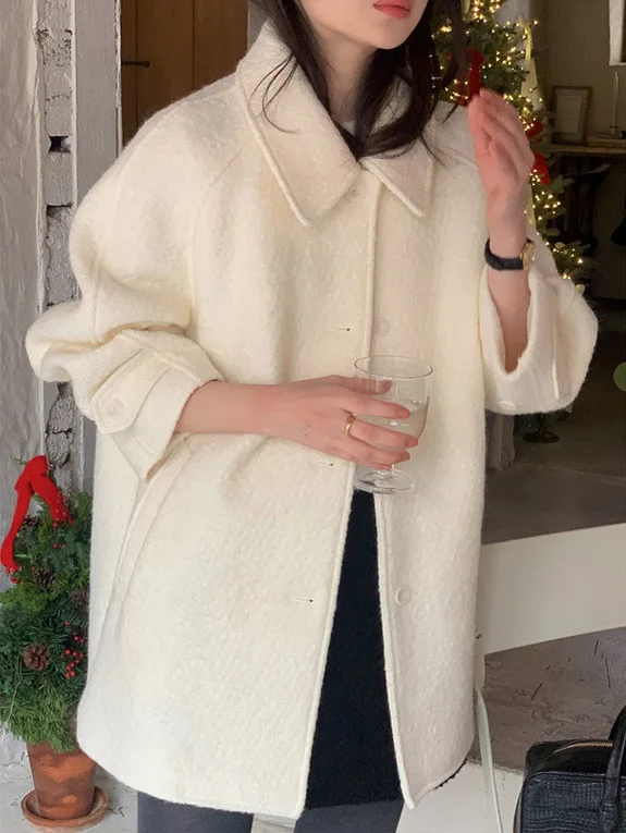 Single Breasted Blends Long Sleeve Woolen Coat 52B370