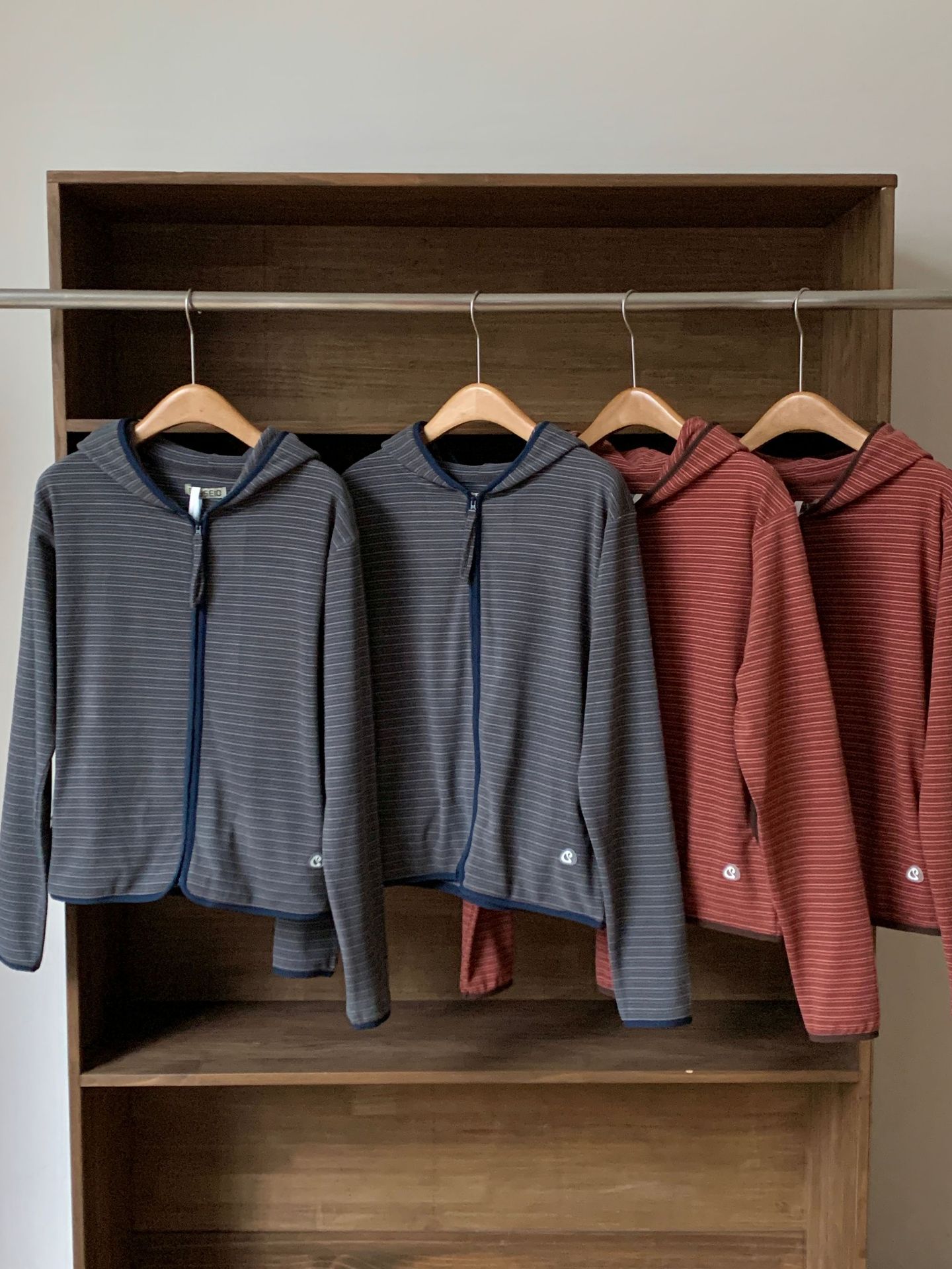 Milled Striped Hooded Sweater Jacket Women 73C092