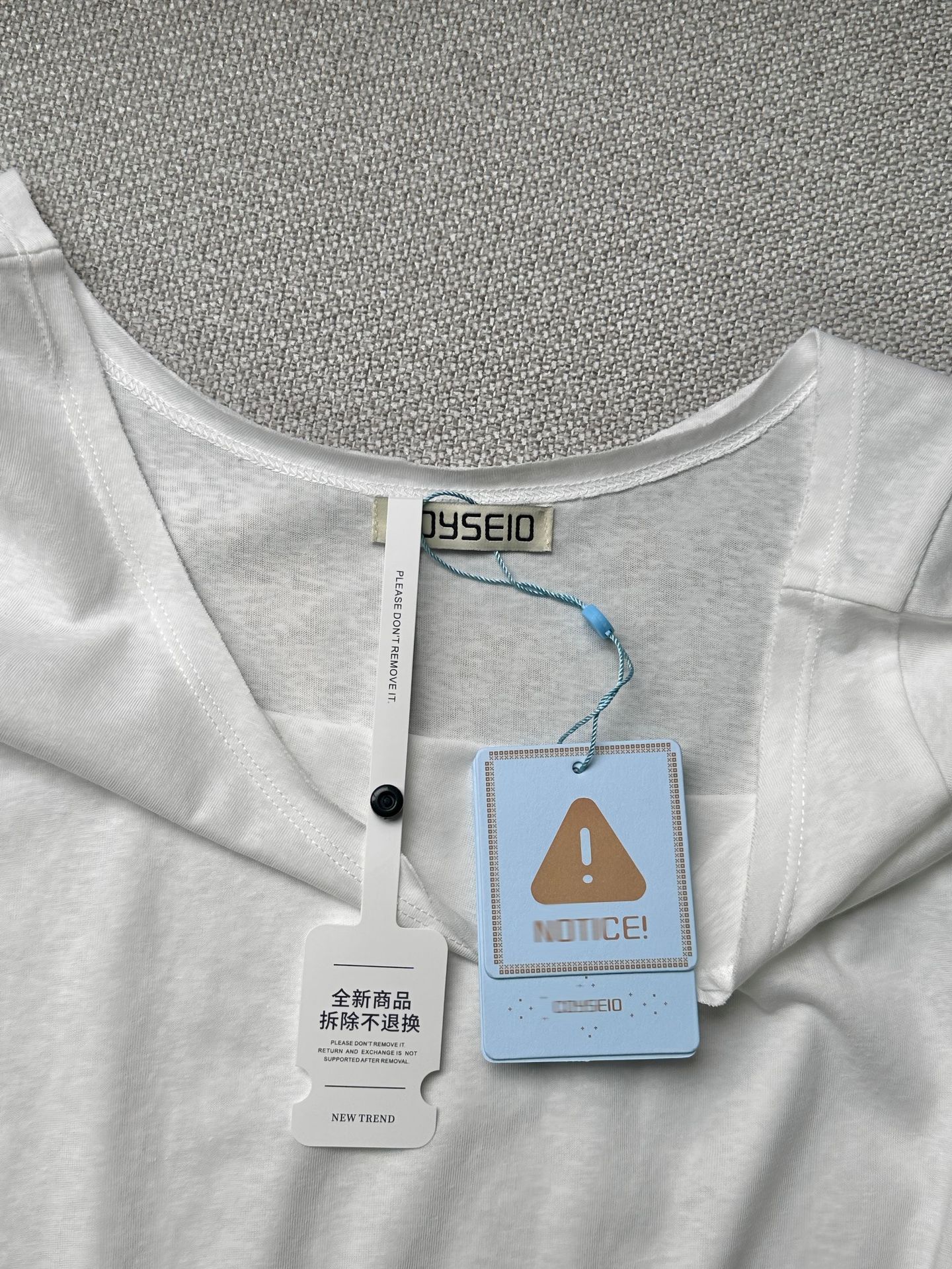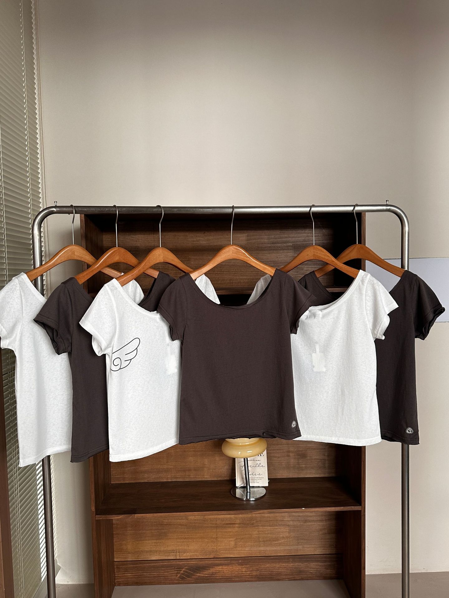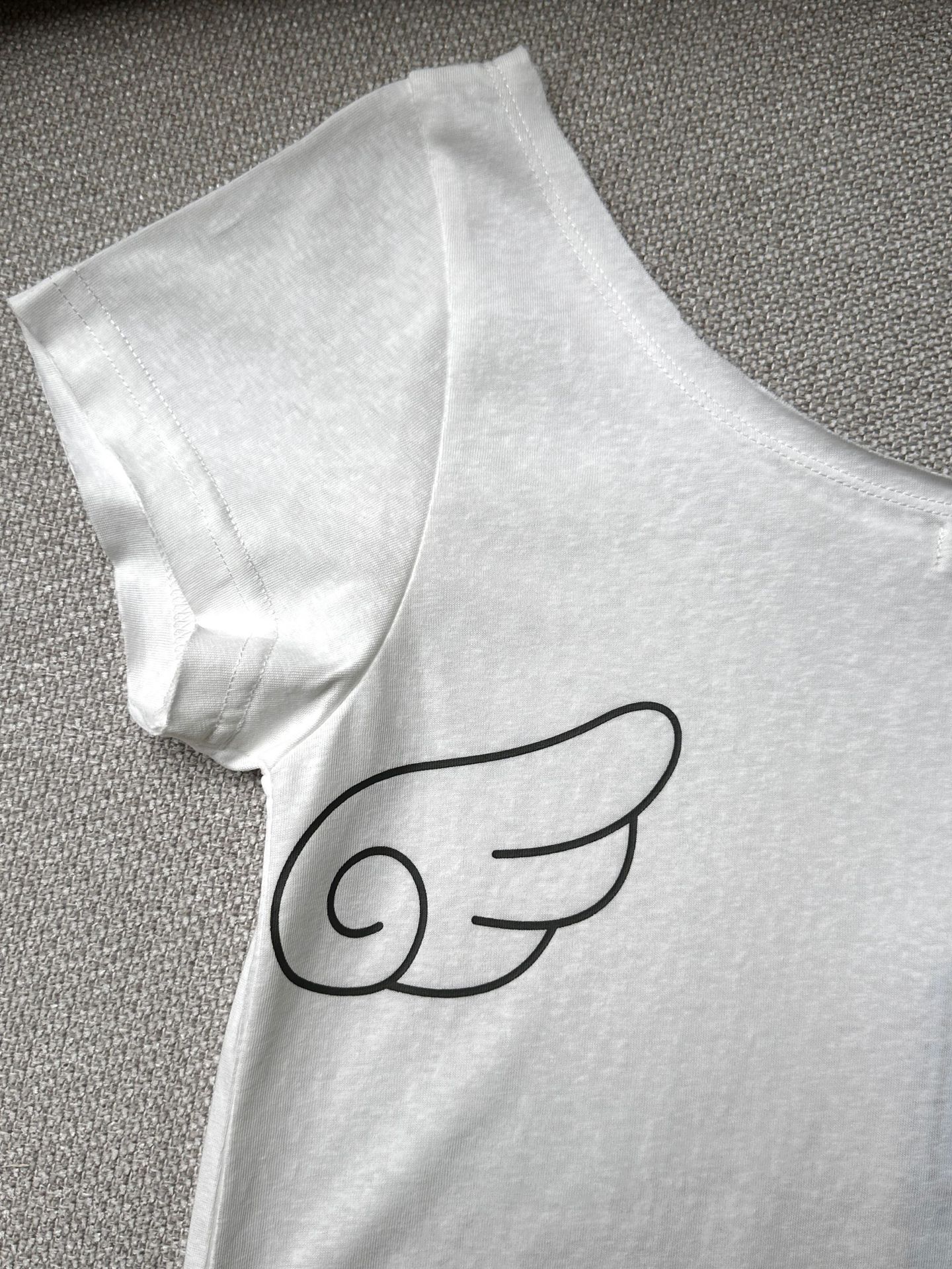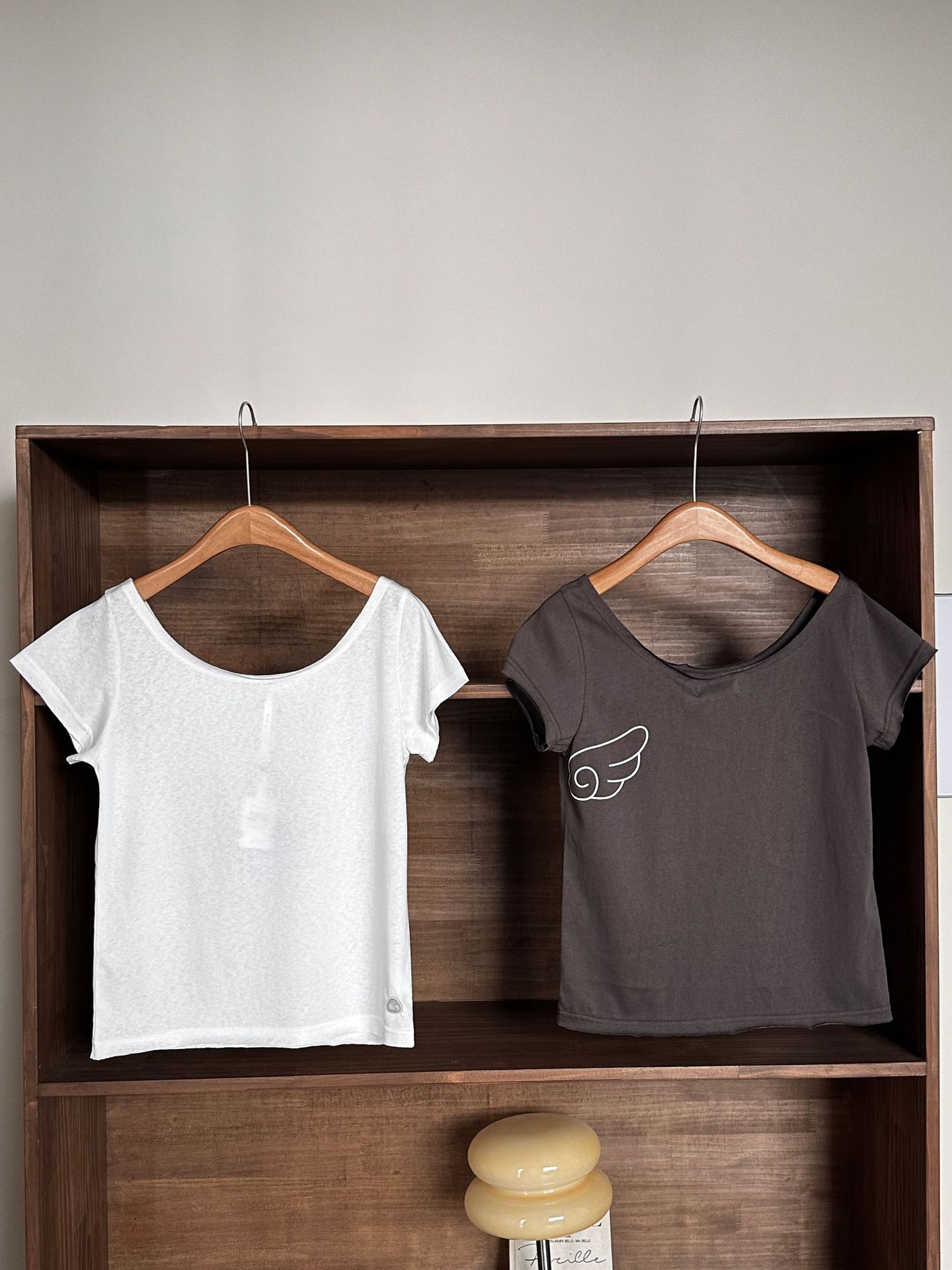 Slant Collar Shoulder Wing Print T-Shirt 73C093