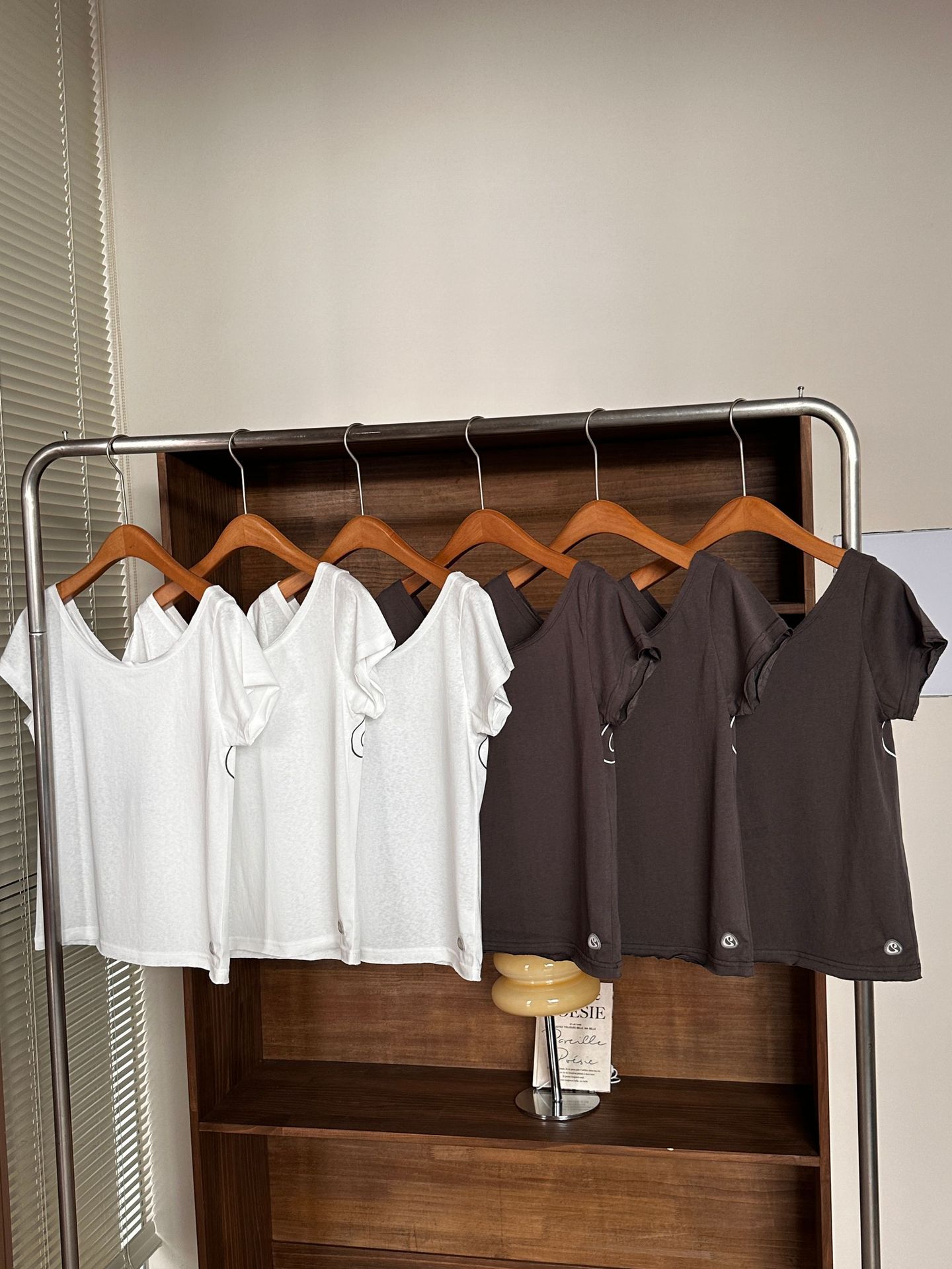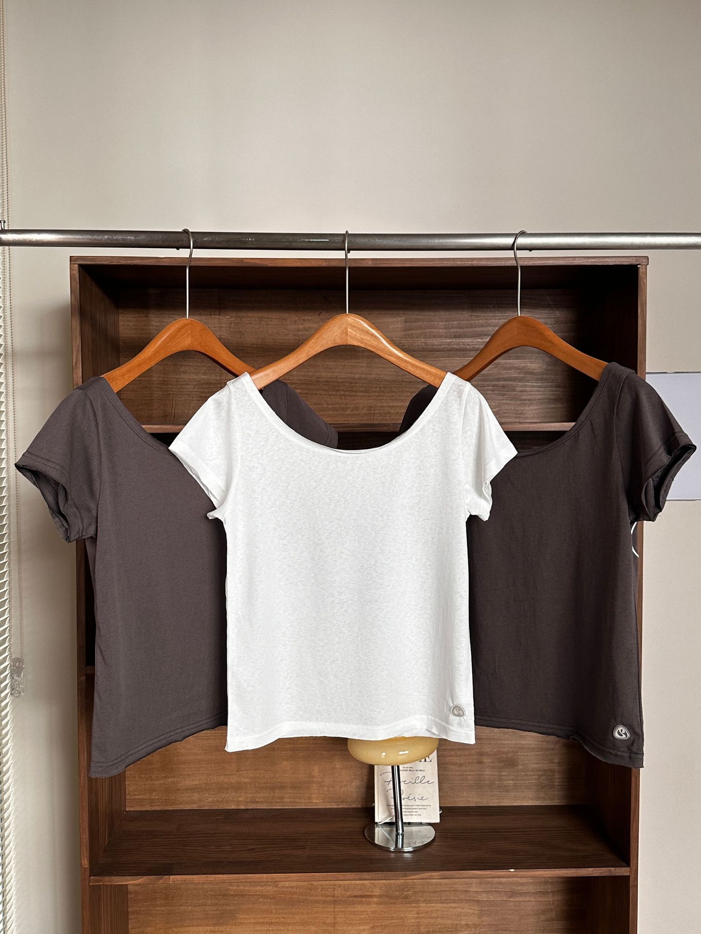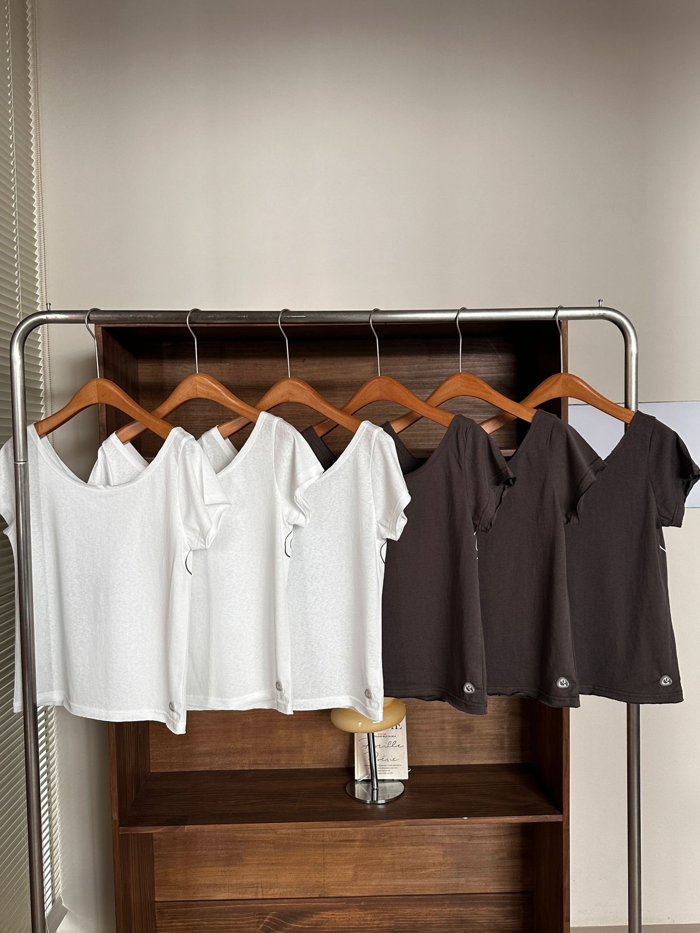 Slant Collar Shoulder Wing Print T-Shirt 73C093