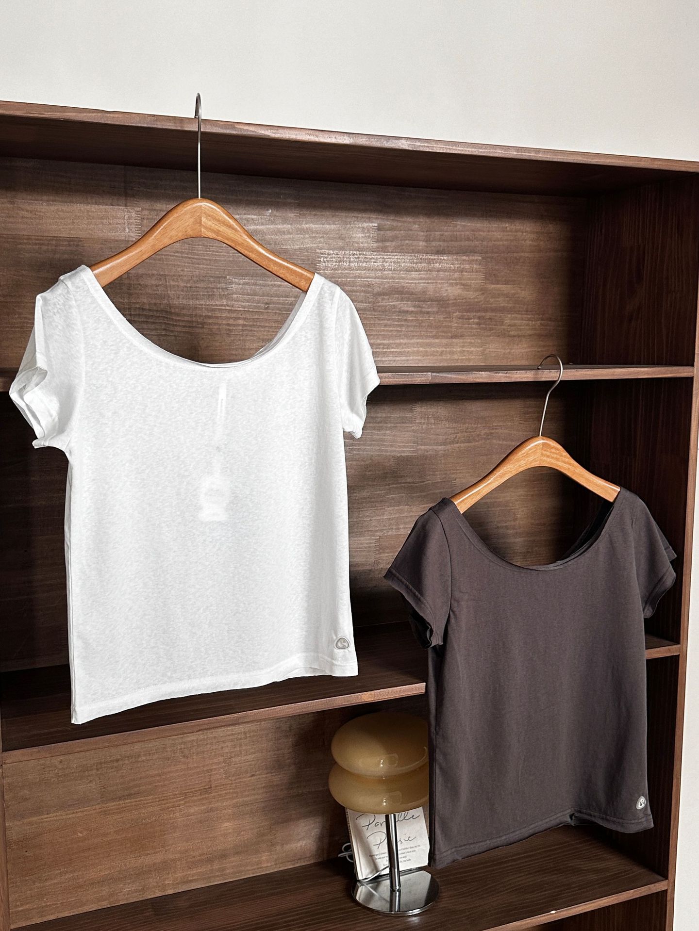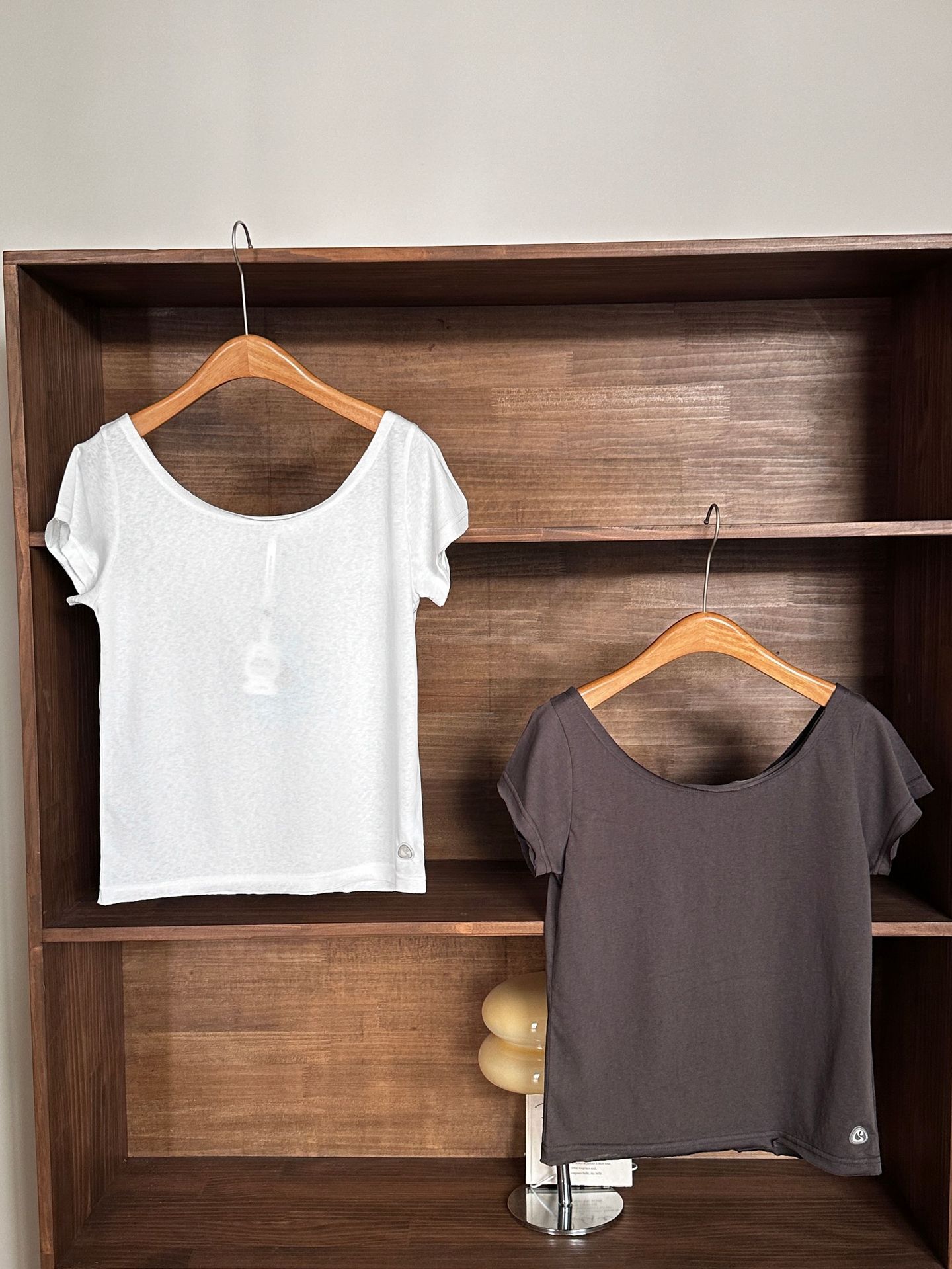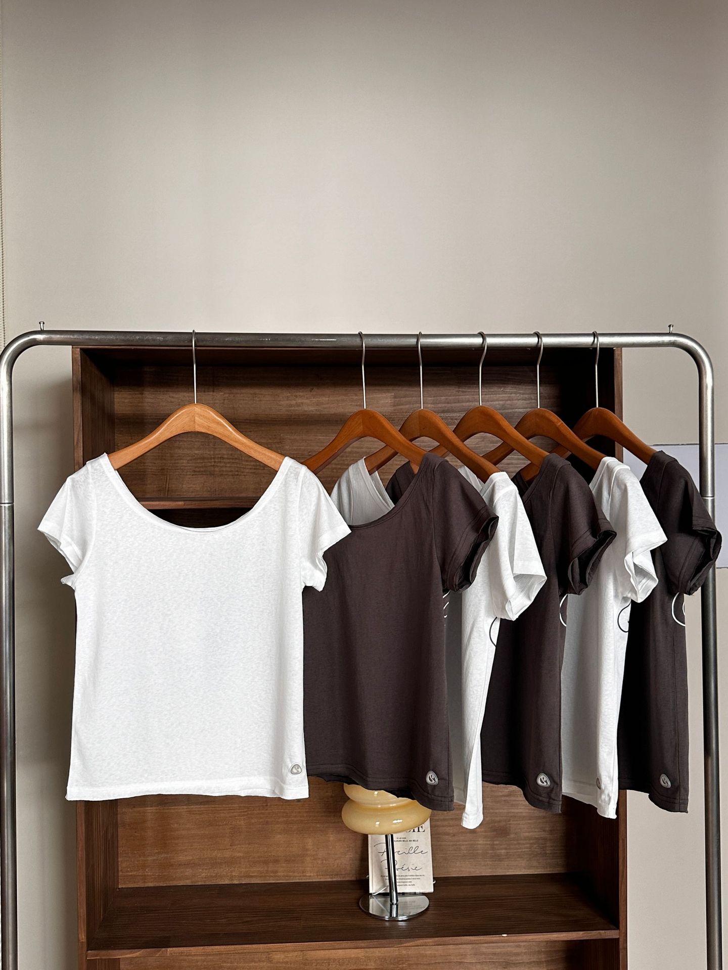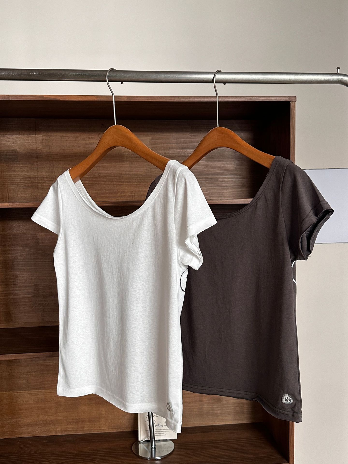 Slant Collar Shoulder Wing Print T-Shirt 73C093