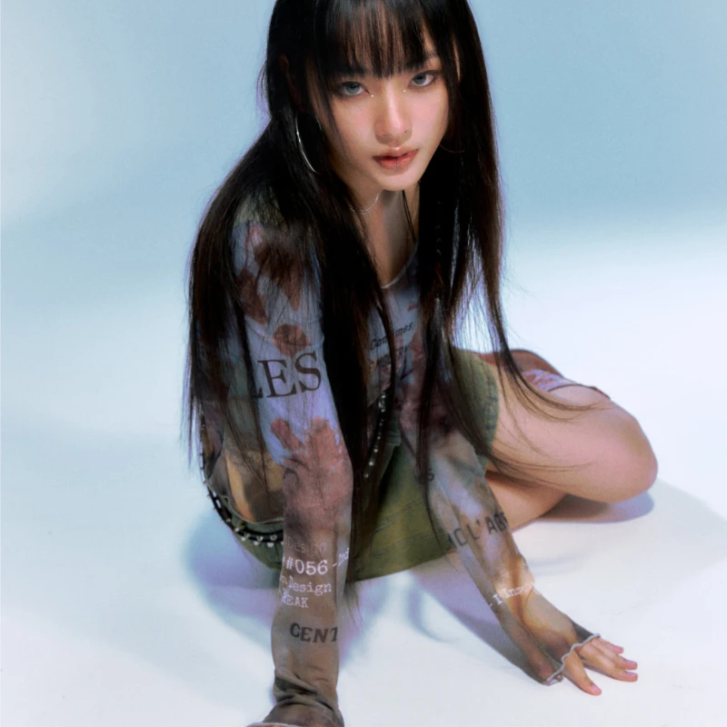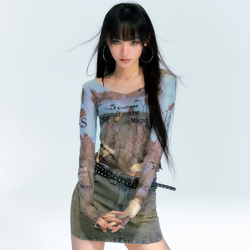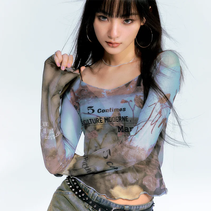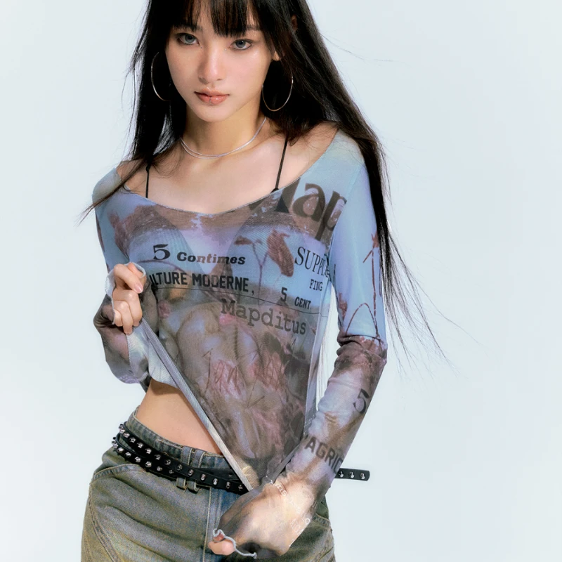 Oil Painting Gauze Printing Slim Crop Top SA258