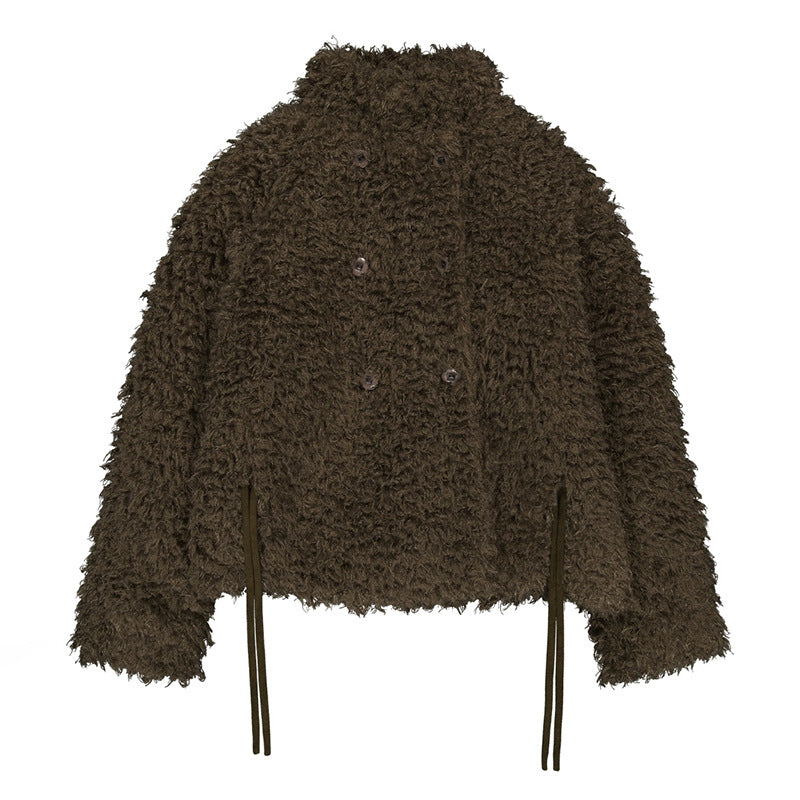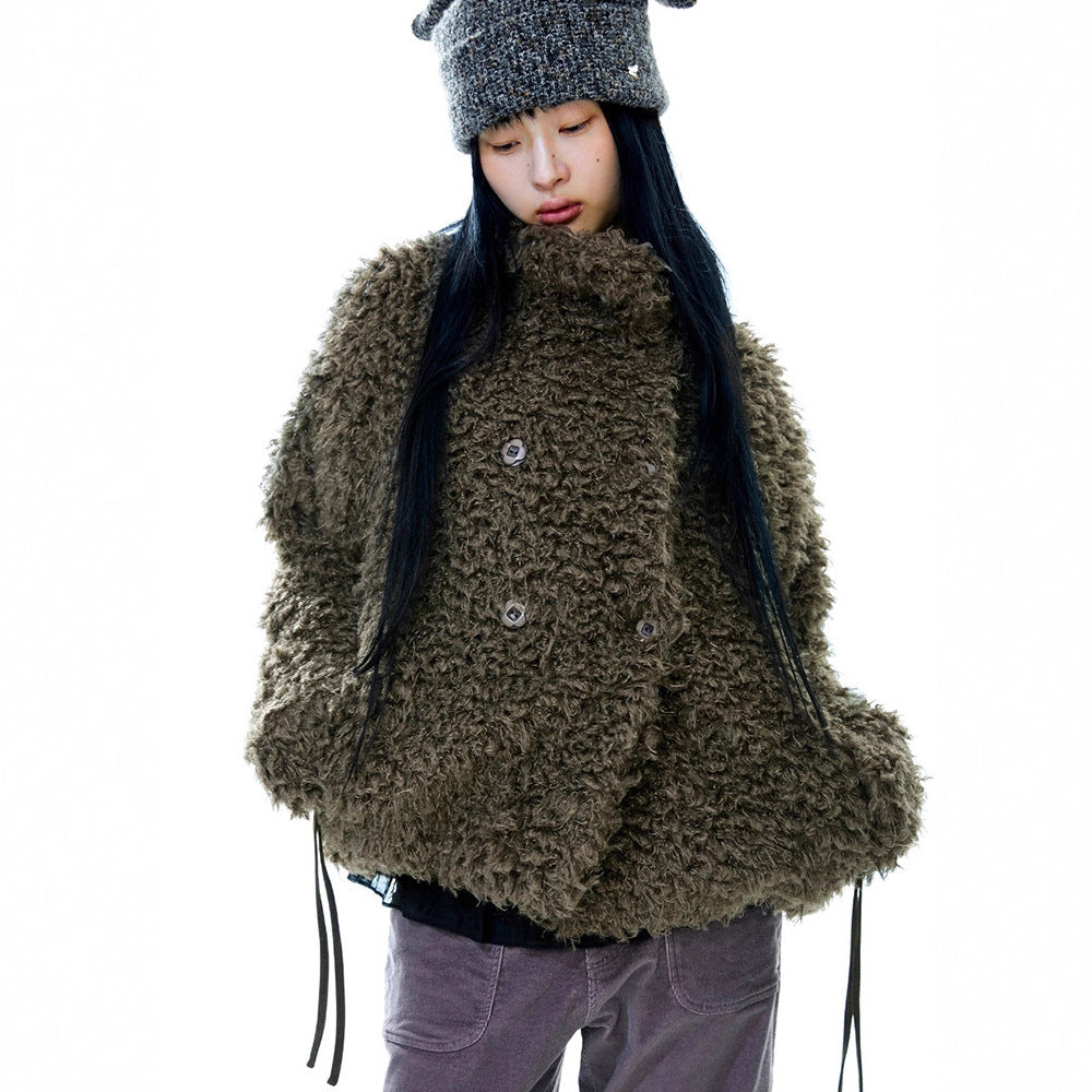 Plush Lace-Up Double-Breasted Jacket Top Women 73C099